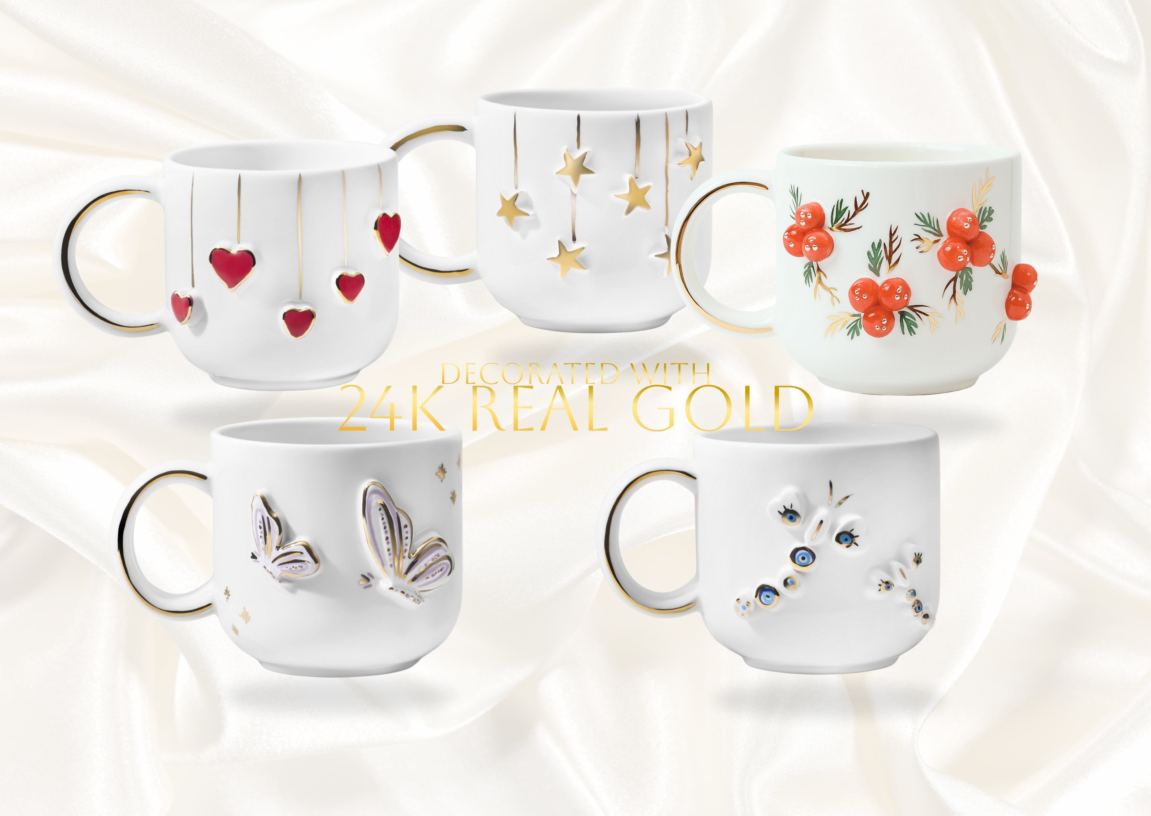 Tamamı el İşçiliği, Premium Kalite, Özel Tasarım 24K Gerçek Altın Dekorlu Seramik Ürünler